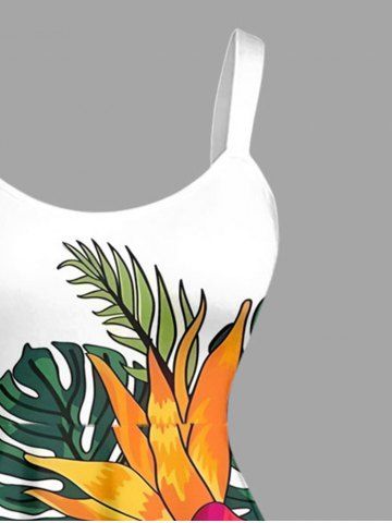 Plus Size Hibiscus Flower Tropical Leaf Print Hawaii Tank Dress - White - Xxs