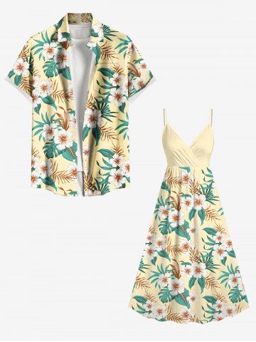 Graphic Dresses > Plus Size Hibiscus Flower Tropical Leaf Print Surplice Hawaii Cami Dress