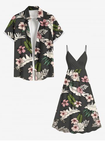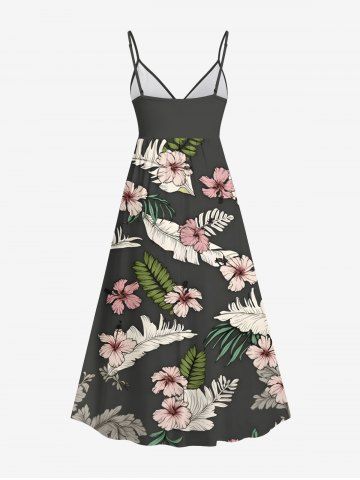 Plus Size Hibiscus Flower Tropical Leaf Print Surplice Hawaii Cami Dress - Gray - 5x