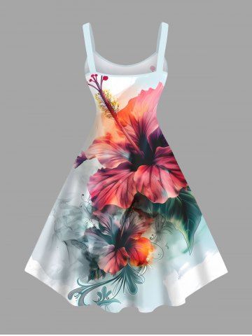Graphic Dresses > Plus Size Hibiscus Flower Tropical Leaf Watercolor Print Hawaii Tank Dress