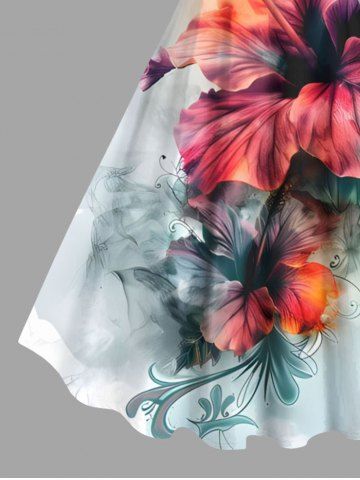 Graphic Dresses > Plus Size Hibiscus Flower Tropical Leaf Watercolor Print Hawaii Tank Dress