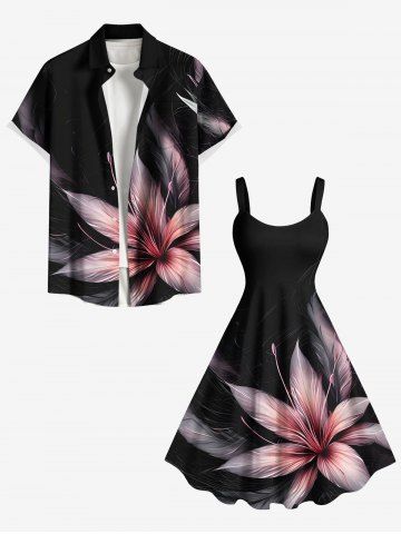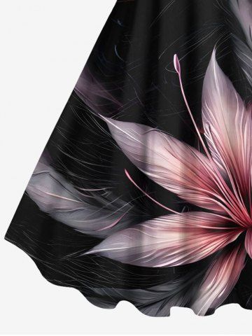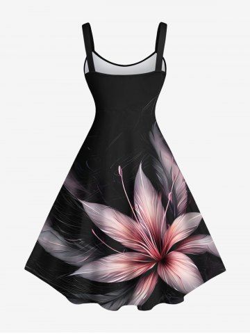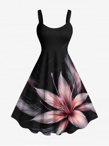 Plus Size Hibiscus Flower Tropical Print Hawaii Tank Dress - Black - 1x