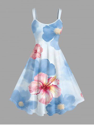 Graphic Dresses > Plus Size Hibiscus Flower Watercolor Print Hawaii Tank Dress