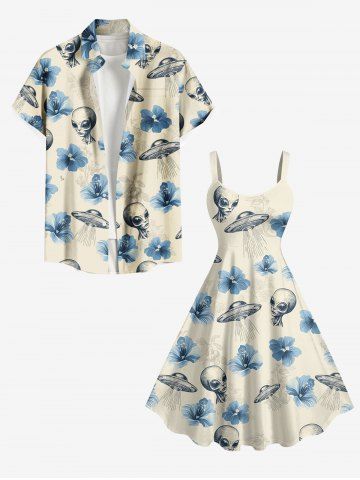 Graphic Dresses > Plus Size Hibiscus Flowers Alien UFO Print Hawaii Tank Dress