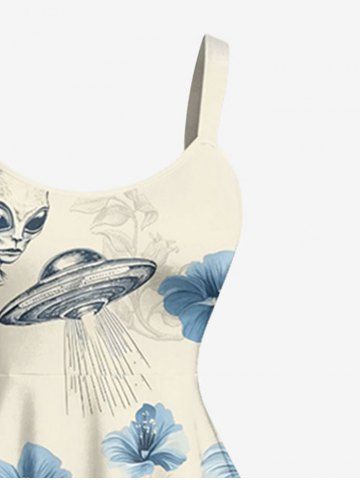 Graphic Dresses > Plus Size Hibiscus Flowers Alien UFO Print Hawaii Tank Dress