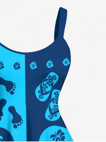 Plus Size Hibiscus Flowers Flip Flops Colorblock Feet Print Hawaii Tank Dress - Blue - 4x