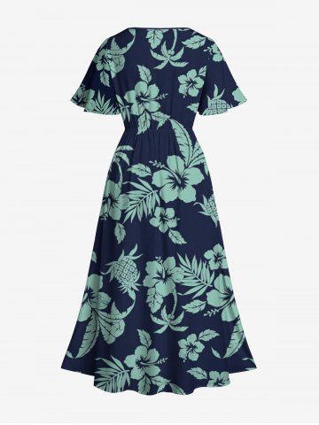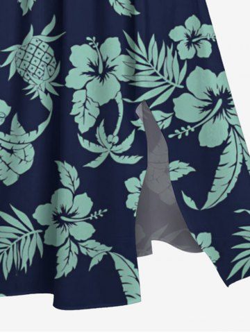 L*****a4Hibiscus Flowers Leaf Coconut Tree Pineapple Print Plus Size Matching Hawaii Beach Outfit For CouplesColor: DEEP BLUEThe sizes for the dress run big. If you can size down, you should.