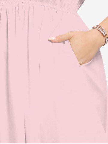 Plus Size Hibiscus Flowers Leaf Colorblock Print Split Hawaii Midi Dress - Light Pink - Xxs