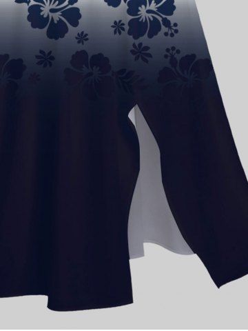 Plus Size Hibiscus Flowers Leaf Ombre Colorblock Print Hawaii Split Dress - Midnight Blue - 1x