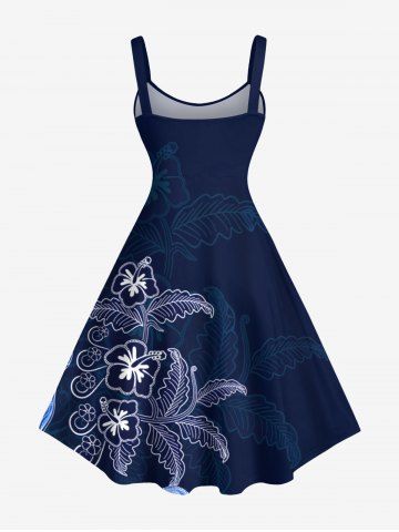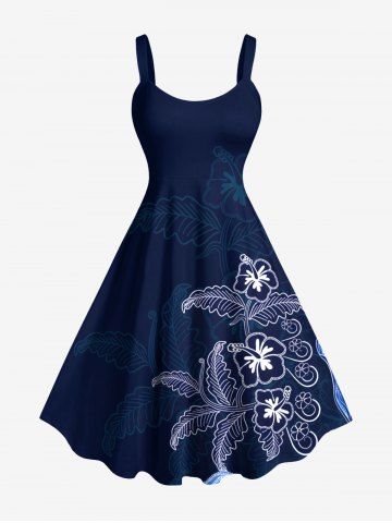 Graphic Dresses > Plus Size Hibiscus Flowers Leaf Print Hawaii Tank Dress