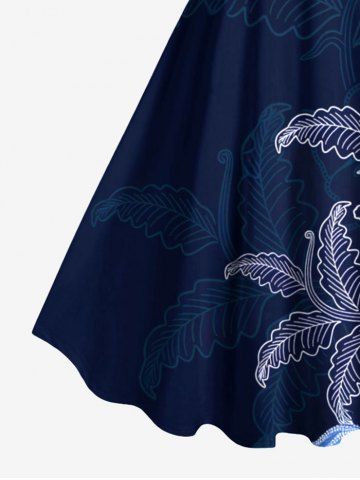 Plus Size Hibiscus Flowers Leaf Print Hawaii Tank Dress - Black - 1x