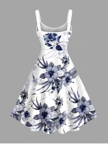 Plus Size Hibiscus Flowers Leaf Print Hawaii Tank Dress - White - 4x