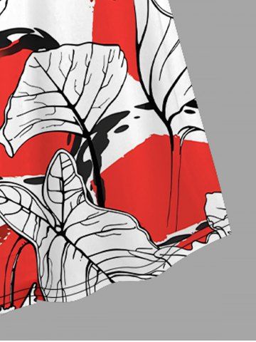 Plus Size Hibiscus Flowers Leaf Print Surplice Hawaii Cami Dress - Red - 3x