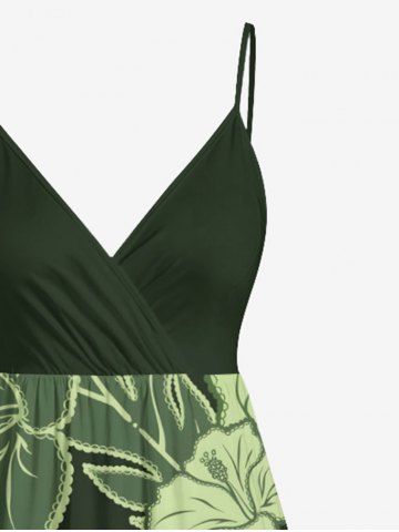 Plus Size Hibiscus Flowers Leaf Print Surplice Hawaii Cami Dress - Green - 4x