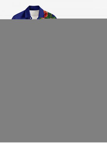Plus Size Hibiscus Flowers Leaf Print Surplice Hawaii Cami Dress - Blue - Xxs
