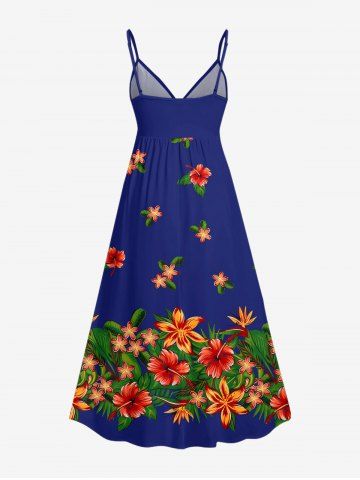 Plus Size Hibiscus Flowers Leaf Print Surplice Hawaii Cami Dress - Blue - 6x