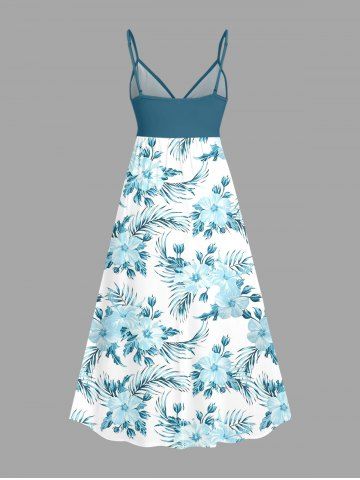 Plus Size Hibiscus Flowers Leaf Print Surplice Hawaii Cami Dress - Light Blue - Xs