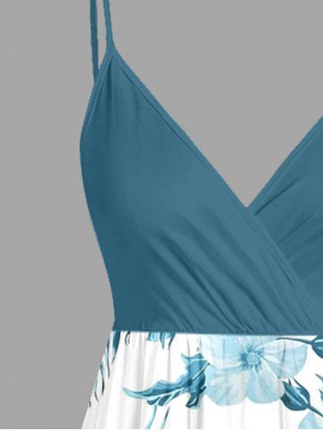 Plus Size Hibiscus Flowers Leaf Print Surplice Hawaii Cami Dress - Light Blue - 5x