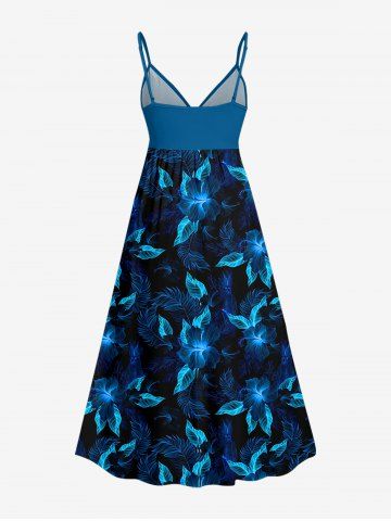 Plus Size Hibiscus Flowers Leaf Print Surplice Hawaii Cami Dress - Midnight Blue - 3x