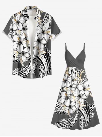 Plus Size Hibiscus Flowers Leaf Print Surplice Hawaii Cami Dress - Gray - Xxs