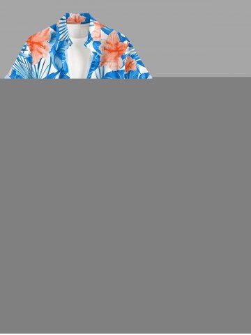 Plus Size Hibiscus Flowers Leaf Print Surplice Hawaii Midi Dress - Sky Blue - Xxs