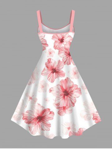 Plus Size Hibiscus Flowers Print Hawaii Tank Dress - White - L