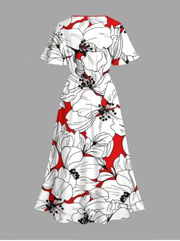 Graphic Dresses > Plus Size Hibiscus Flowers Print Split Hawaii Midi Dress