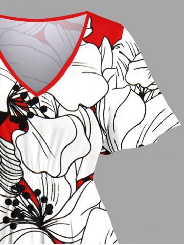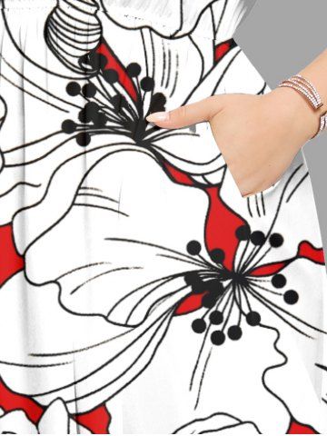 Plus Size Hibiscus Flowers Print Split Hawaii Midi Dress - White - 2x