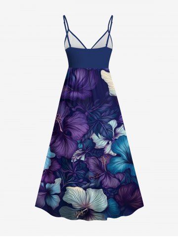 Plus Size Hibiscus Flowers Print Surplice Hawaii Cami Dress - Purple - 5x