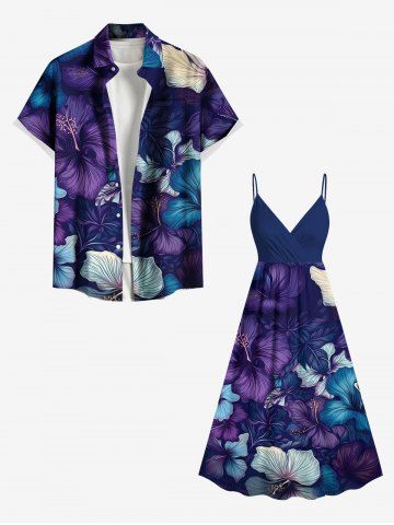 Plus Size Hibiscus Flowers Print Surplice Hawaii Cami Dress - Purple - 6x