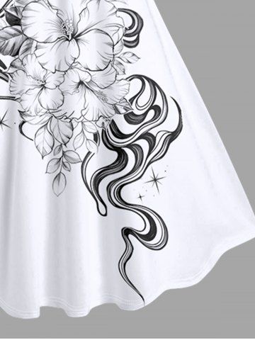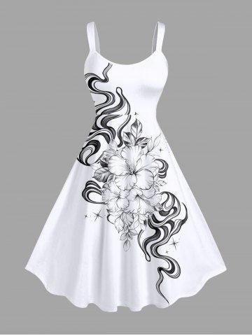Plus Size Hibiscus Flowers Star Print Hawaii Tank Dress - White - Xxs