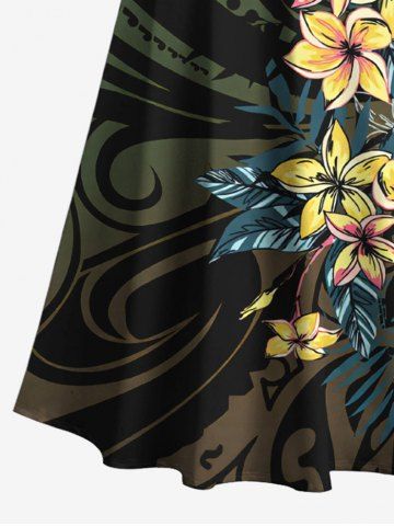 Plus Size Hibiscus Flowers Tropical Leaf Print Cold Shoulder Crisscross Hawaii Maxi Dress - Black - 1x