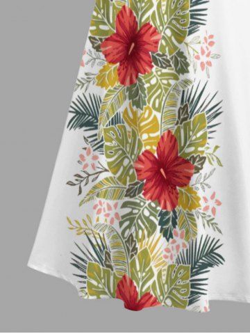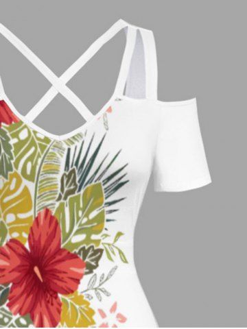 Plus Size Hibiscus Flowers Tropical Leaf Print Cold Shoulder Crisscross Hawaii Maxi Dress - White - 4x