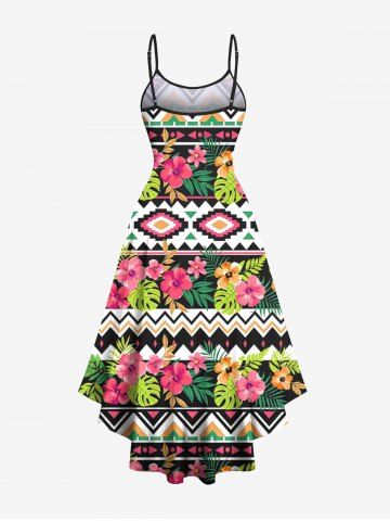 Graphic Dresses > Plus Size Hibiscus Flowers Tropical Leaf Print Hawaii High Low Cami Dress