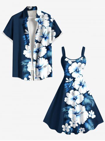 Graphic Dresses > Plus Size Hibiscus Flowers Tropical Leaf Print Hawaii Tank Dress