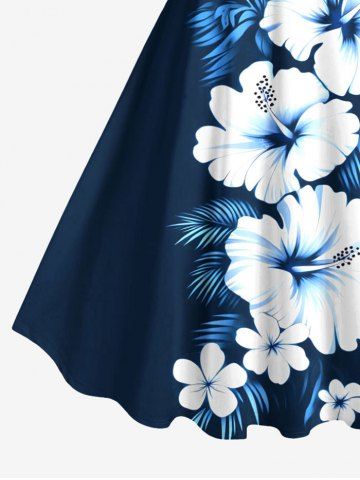 Plus Size Hibiscus Flowers Tropical Leaf Print Hawaii Tank Dress - Blue - L
