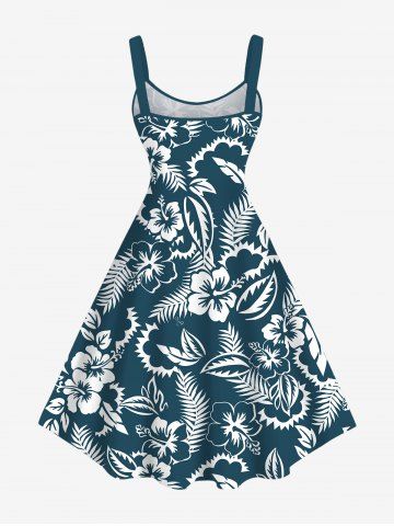 Graphic Dresses > Plus Size Hibiscus Flowers Tropical Leaf Print Hawaii Tank Dress