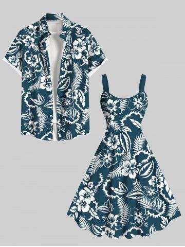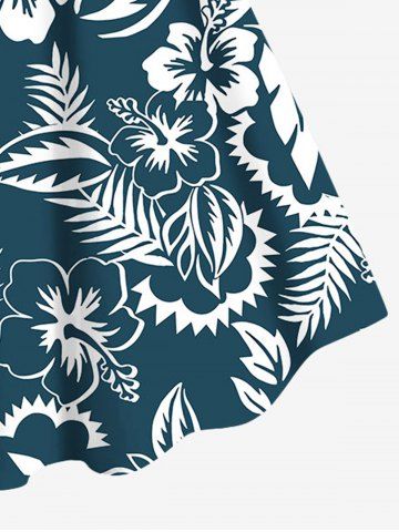 Plus Size Hibiscus Flowers Tropical Leaf Print Hawaii Tank Dress - Navy Blue - Xxs