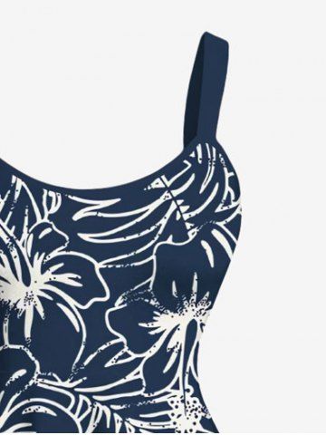 Plus Size Hibiscus Flowers Tropical Leaf Print Hawaii Tank Dress - Blue - 3x