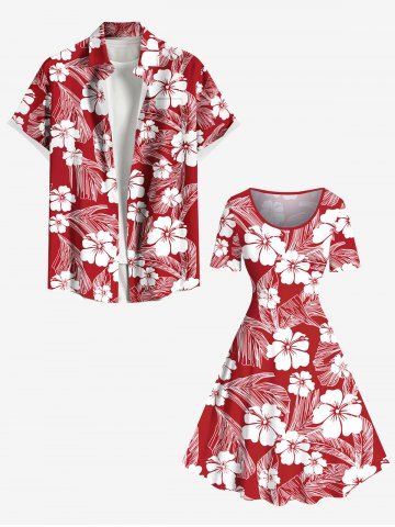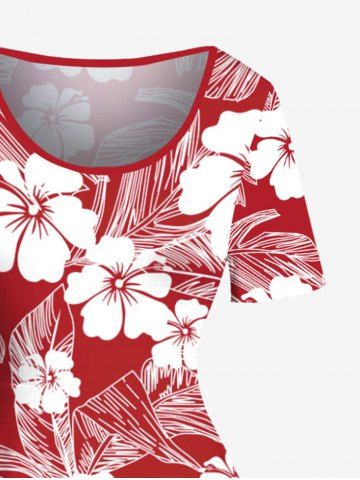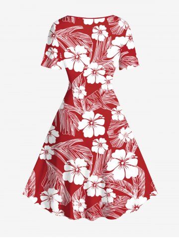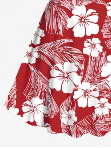 Plus Size Hibiscus Flowers Tropical Leaf Print Hawaii Vintage Dress - Red - 6x
