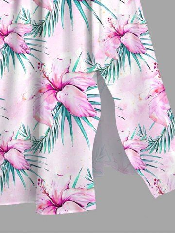 Plus Size Hibiscus Flowers Tropical Leaf Print Split Hawaii Midi Dress - Light Pink - 1x
