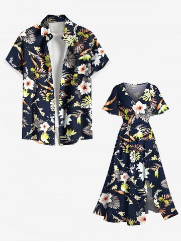 Graphic Dresses > Plus Size Hibiscus Flowers Tropical Leaf Print Split Hawaii Midi Dress