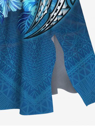 Plus Size Hibiscus Flowers Tropical Leaf Print Split Hawaii Midi Dress - Sky Blue - 4x