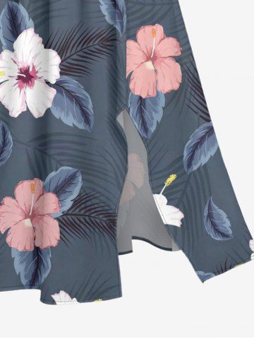 Plus Size Hibiscus Flowers Tropical Leaf Print Split Hawaii Midi Dress - Blue Gray - 5x