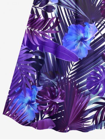 Plus Size Hibiscus Flowers Tropical Leaf Print Surplice Hawaii Cami Dress - Blue - M
