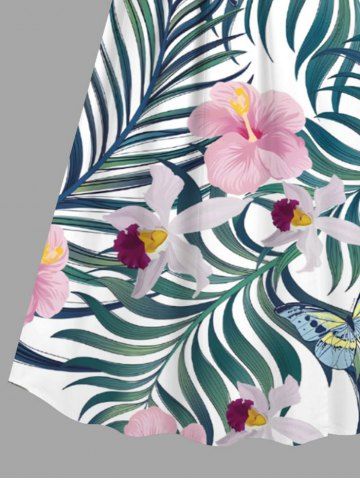 Graphic Dresses > Plus Size Hibiscus Flowers Tropical Leaf Print Surplice Hawaii Cami Dress