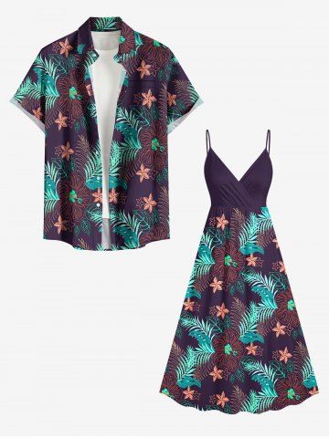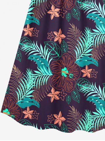 Plus Size Hibiscus Flowers Tropical Leaf Print Surplice Hawaii Cami Dress - Concord - Xs