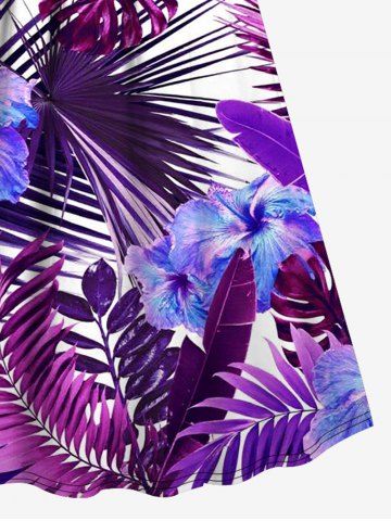 Plus Size Hibiscus Flowers Tropical Leaf Print Surplice Hawaii Cami Dress - Purplish Red - Xxs