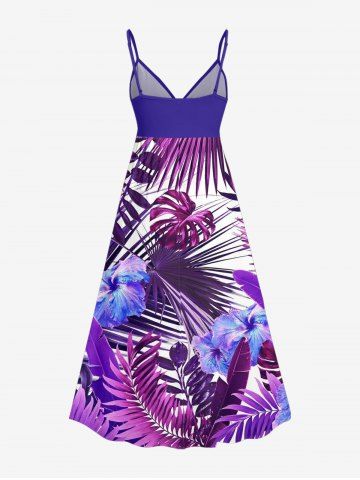 Graphic Dresses > Plus Size Hibiscus Flowers Tropical Leaf Print Surplice Hawaii Cami Dress