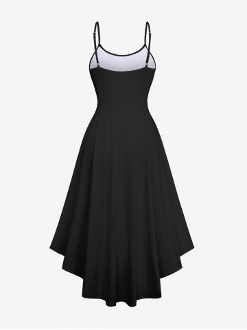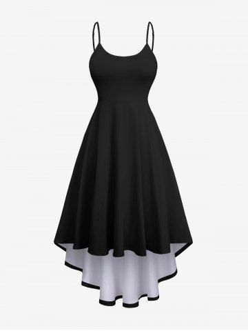 Plus Size High Low Asymmetric Solid Cami Dress - Black - S